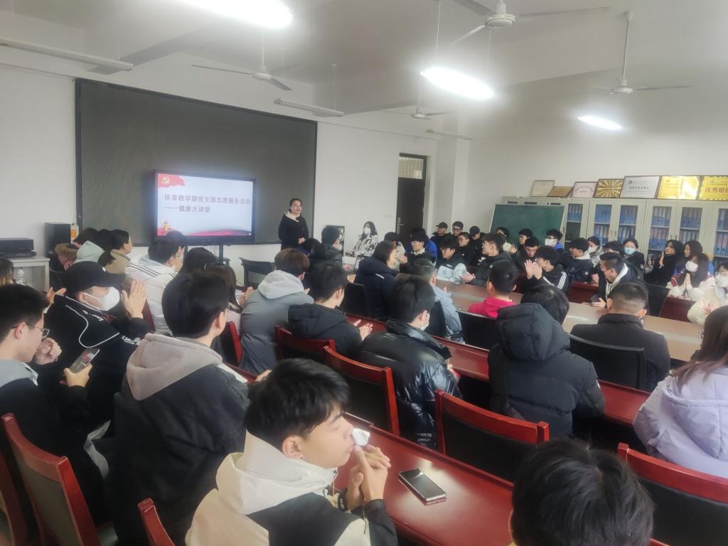 为更好的指导学生假期进行科学健身,保障师生身心健康,弘扬志愿服务精神,充分发挥党员先锋模范作用,12月28日中午,体育教学部党支部在求真楼219举办健康大讲堂志愿服务暨党史学习教育总结专题活动。