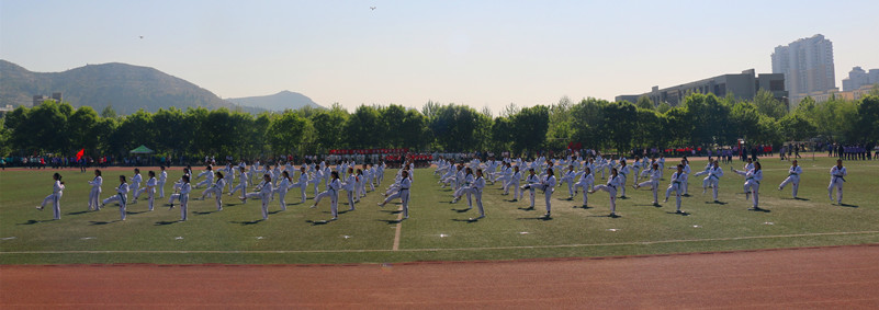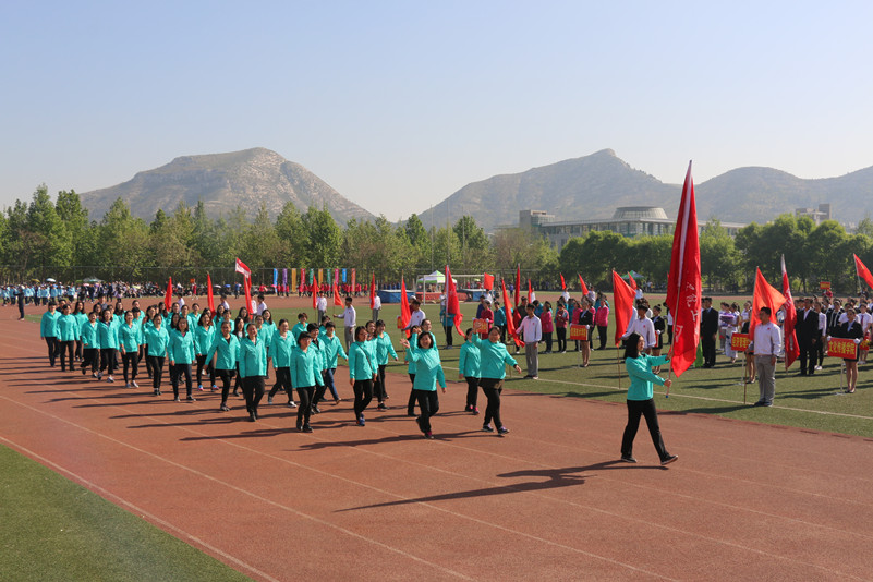 范素华在致辞中指出,近年来,学校高度重视体育教学工作,积极推进体育教学改革,针对不同年级的同学开展不同的体育课程,基本建立起了基础、选项和选修三个层次的体育课程体系。为发挥同学们的体育特长,尤其是为每一位同学学会至少一种适合于自己的健身技能奠定了良好基础。一直以来,学校大力倡导全民健身,积极开展阳光体育运动,群众性体育活动不断深入,尤其是通过组建特色运动队积极训练,既起到以点带面、点面结合、相互促进的作用,又使得同学们在各级各类比赛中屡获佳绩。2016年,我校健美操队在“亚洲大众体操节暨第五届全国全民健身操舞大赛总决赛”中荣获特等奖4项、一等奖2项、二等奖2项;在我校首次参加的全国大学生跆拳道锦标赛中,获得女子甲组品势第三名和第五名;在首届山东省高等学校健身气功比赛中,武术队获得了一等奖1项,二等奖1项;在山东省第六届全民健身运动会暨全省体育行业职业技能竞赛中,跆拳道项目获得团体第二名。在刚刚结束不久的“蘭园”杯驻济高校教职工足球比赛中,我校男子教工足球队获得第三名的好成绩,并获得“最佳人气奖”。这些骄人成绩充分展示了我校师生的良好体质和精神风貌。她强调,此次运动会是对大家体育运动意识、体育运动水平和成果的一次大检阅,也是对大家的身体素质、团队意识、拼搏精神及综合素质的大检验,希望全体参赛运动员要发扬女院人“自强不息、百折不挠、求实创新、不断攀登”的精神,增强自信、积极努力、充分发挥、团结协作、勇破纪录、赛出水平;要服从大会安排,尊重裁判,尊重对手,赛出风格;希望全体裁判员要客观公正,严守规程,公正裁决,确保运动会顺利进行。