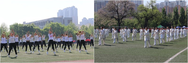 开幕式上,国旗队、彩旗队、学生代表队、教职工代表队精神抖擞,意气风发,迈着铿锵有力的步伐依次入场,在雄壮的国歌声中举行了庄严的升国旗仪式。之后,精彩的学生健美操、跆拳舞、足球操及太极养生杖表演等,作为我校全民健身运动的重要成果相继亮相,将开幕式推向高潮,充分展示了学校师生的活力与热情。
