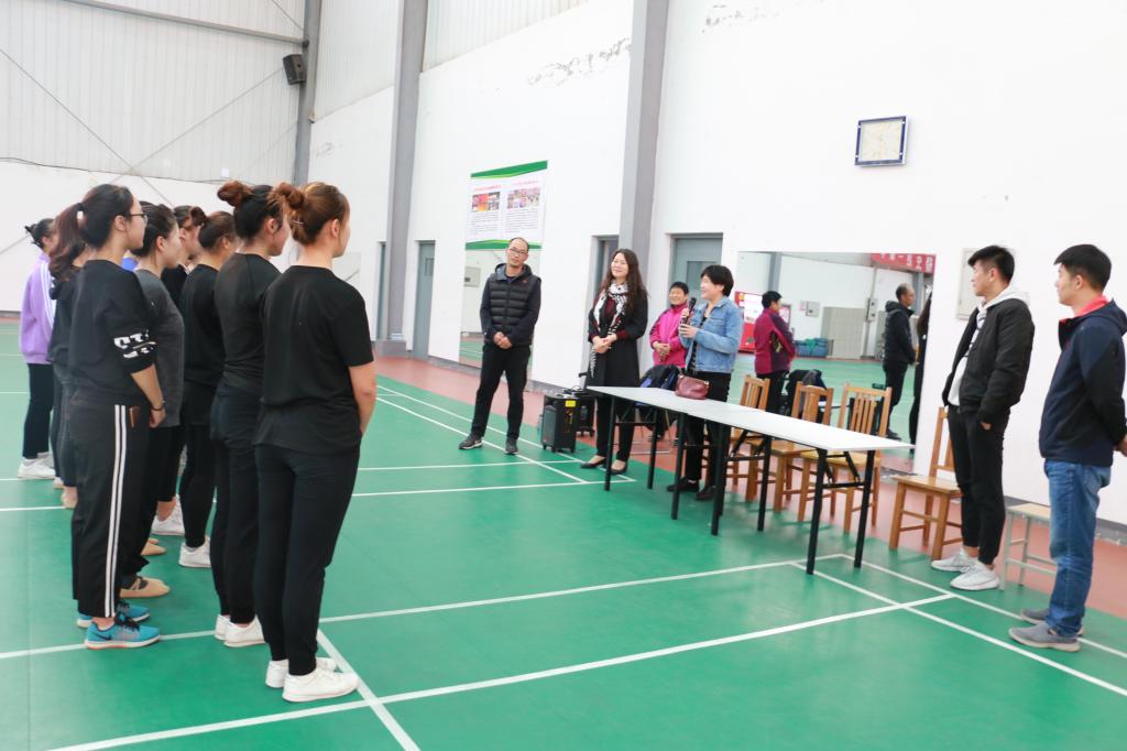10月18日下午四点,两院一部书记王丽芹,体育教学部主任刘淑芬及体育教师们到综合训练馆,参观即将参加山东省教育厅主办的第十四届学生运动会(大学组)健美操比赛运动员们的训练展示。