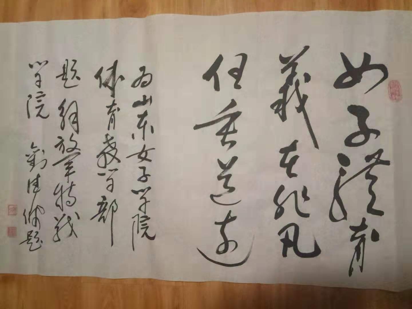 会后,刘德佩教为我校体育教学部赠送墨宝“女子体育,意义非凡,任重道远。”