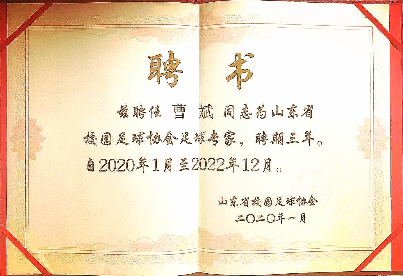 大会对2019年度山东省校园足球工作优秀集体和个人进行了表彰。其中山东女子学院作为优秀集体被授予2019年度山东省校园足球工作高校“突出贡献奖”单位;我校体育教学部李小健老师荣获山东省2019年度校园足球工作“领军人物”称号;曹斌老师荣获山东省校园足球“优秀教练员”称号;闫云娇老师荣获山东省校园足球“优秀裁判员”称号。同时,我校曹斌老师和刘进军老师还被聘为山东省校园足球协会足球专家。