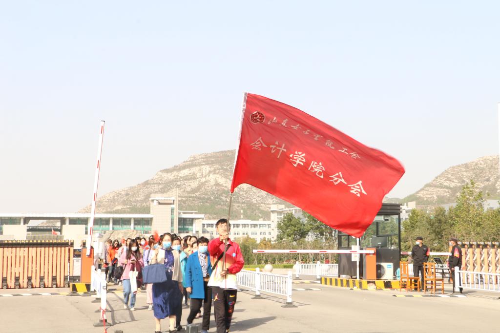 党委副书记王淑霞主持开幕式并宣布学校首届体育文化节开幕。来自学校12个学院的执旗手上台跑旗,校健美操队带来了青春洋溢的健美操表演。开幕式后,举行了教职员工环校园健步走活动。