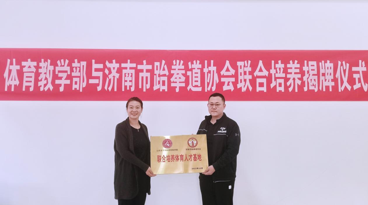 10月27日下午,山东女子学院体育教学部与济南市跆拳道协会通力合作,联合培养体育人才基地揭牌仪式隆重举行。