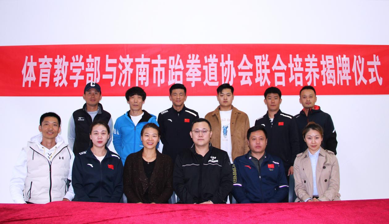 体育教学部主任刘淑芬在揭牌仪式讲话中表示:由衷的感谢济南市跆拳道协会的大力支持,为我校跆拳道运动的普及和发展奠定了坚实的基础,为两家单位的联合培养奠定根基。