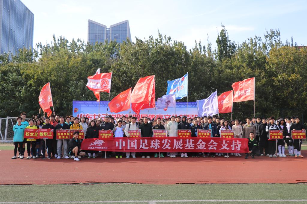 2023年11月9日,由体育教学部、团委和学生处主办的山东女子学院第四届体育文化节暨第七届足球联赛在足球场隆重举行开幕式。团委书记苏婧、体育教学部主任刘淑芬、副主任汤小勇出席开幕式,百余名教职工和学生代表参加开幕式。