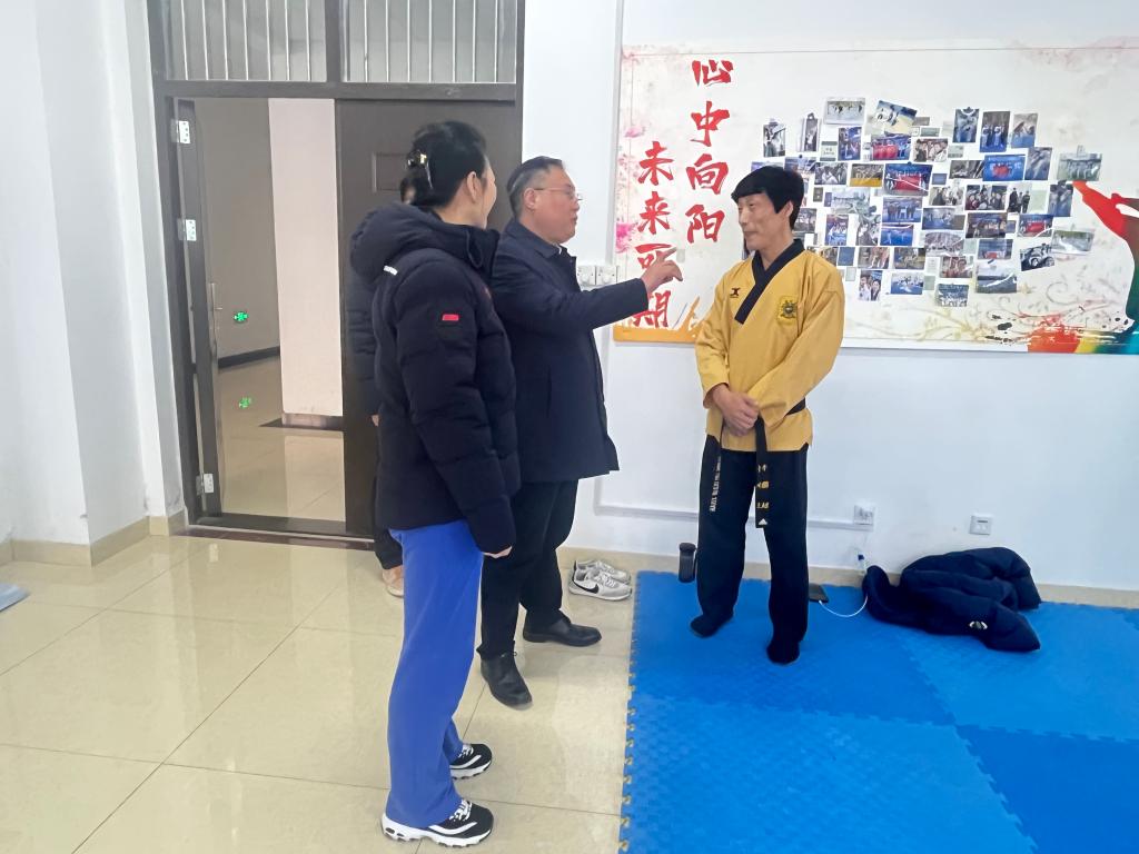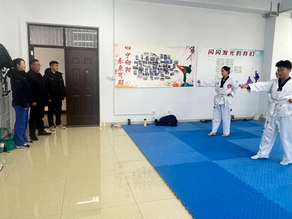 龙书记走进体育课堂,详细观摩了跆拳道课程教学。授课教师牛继超博士采用了多样化的教学方法,将理论知识与实践训练紧密结合,课堂氛围活跃,学生积极参与互动。