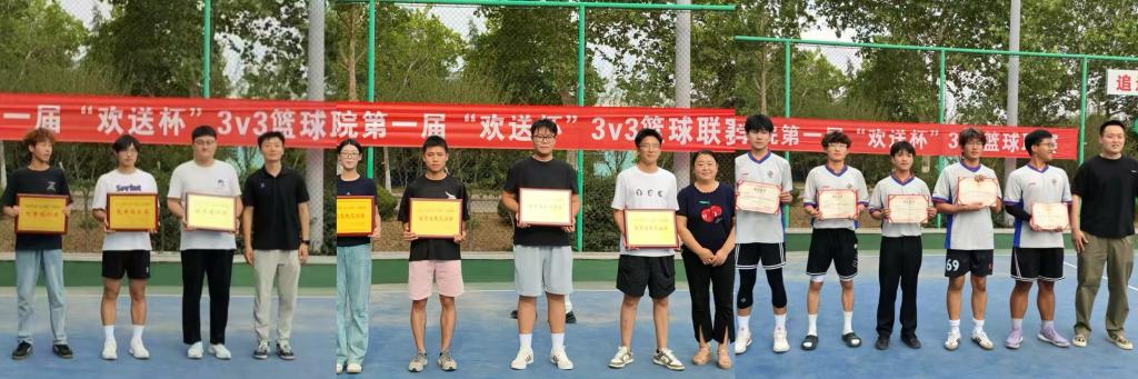 在第一届“欢送杯”3v3男子组篮球联赛中,旅游学院夺得冠军,人工智能学院夺得亚军、数据科学与计算机学院获得季军。