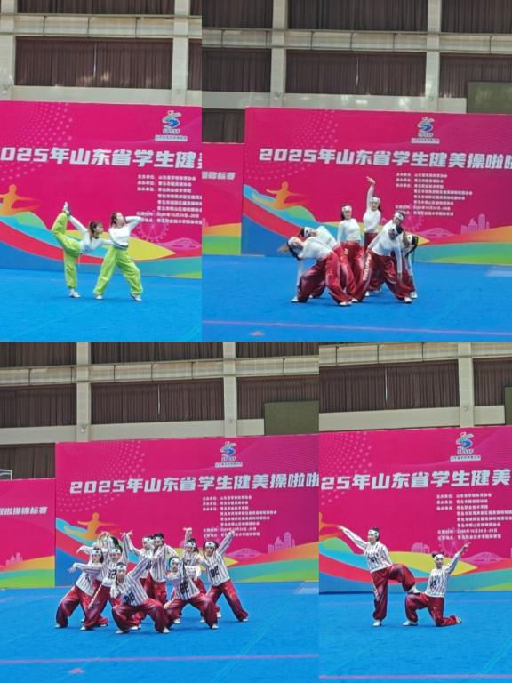 我校健美操队由靳天学、赵敏任教练,带领9名运动员参加。经激烈比拼,我校健美操队凭借精湛技艺与默契协作,成功斩获徒手健身操舞小集体组第二名、集体街舞啦啦操第三名、双人爵士啦啦操第三名、双人街舞啦啦操第三名的优异成绩。