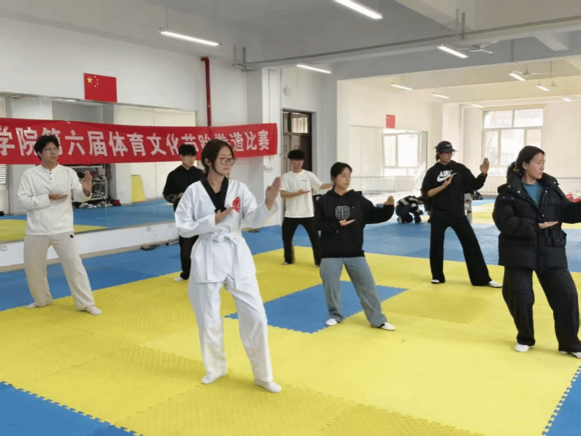 12月18日,由体育教学部、校团委、校学生处主办,校跆拳道社团承办的第六届体育文化节跆拳道比赛在求真楼104跆拳道教室落幕。比赛设置竞速挑战赛、品势挑战赛、竞技对抗赛、VR智能设备比赛四大项目,校跆拳道队教练门陆、牛继超担任裁判长,10名专业裁判员与20名工作人员保障赛事有序推进。