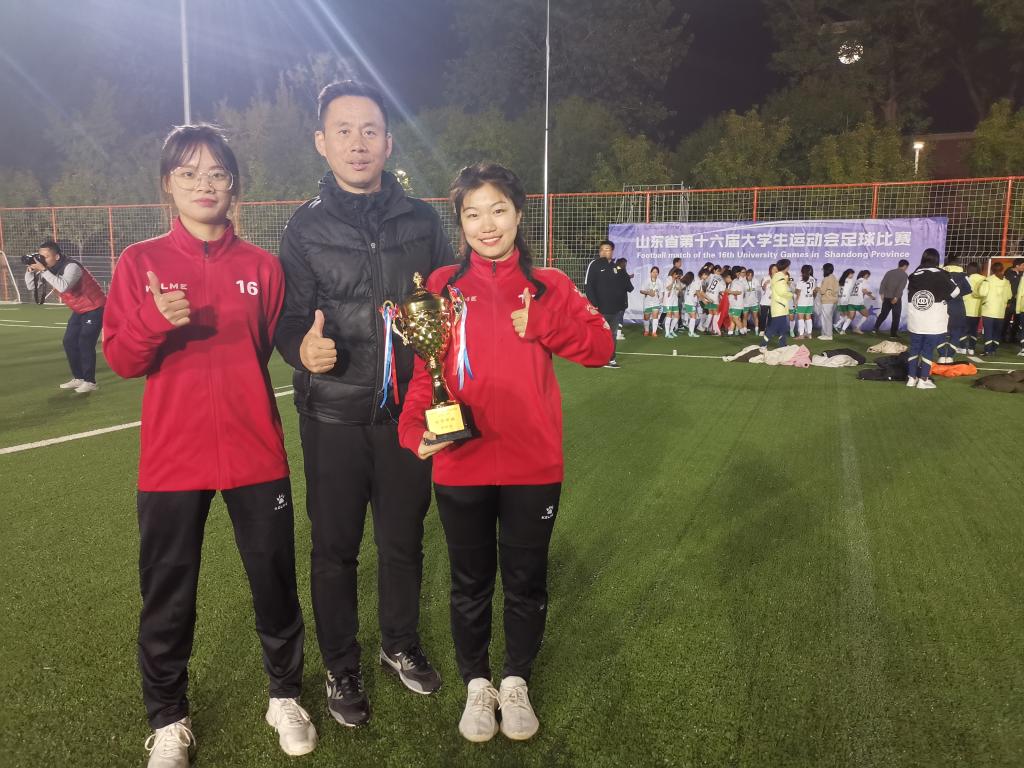 在刚刚结束的山东省第十六届大学生运动会足球比赛中,我校女子足球队再创佳绩,获得女子甲组第四名,曹斌老师荣获“优秀教练员”称号 。
