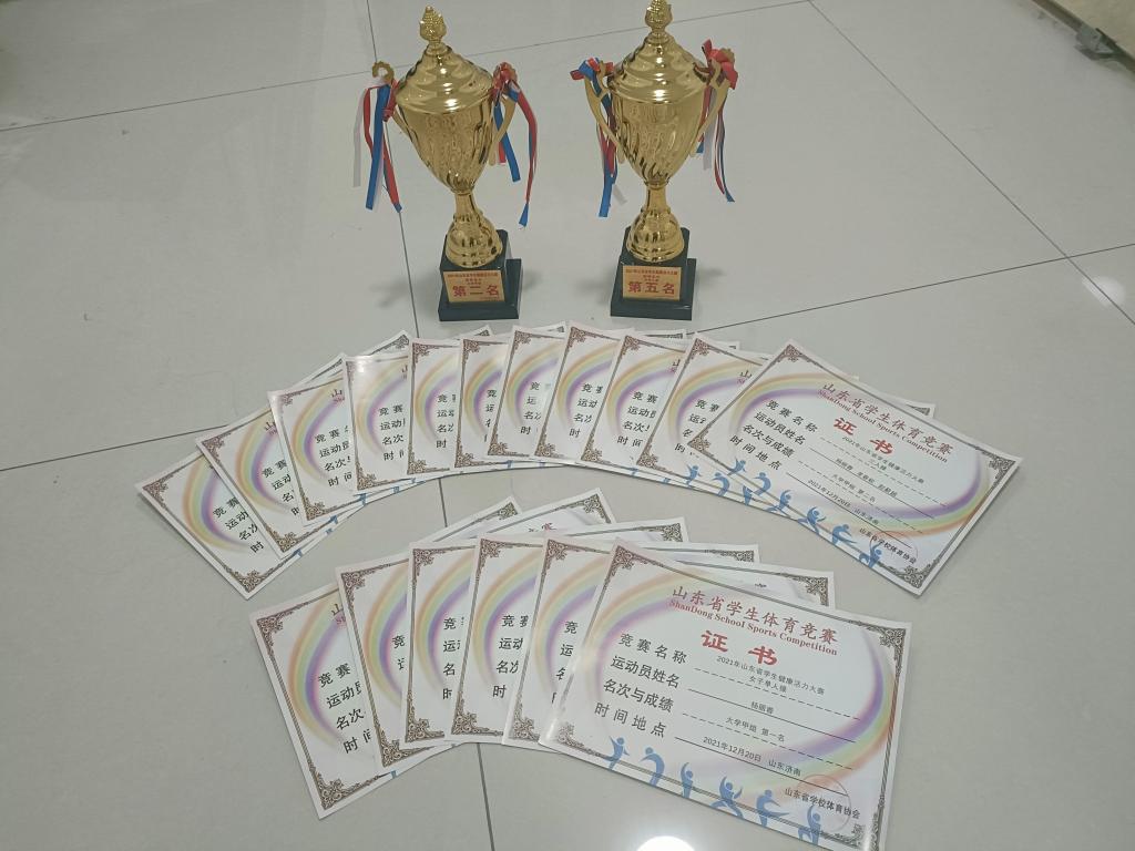 12月19日至20日,由山东省学校体育协会主办的“2021年山东省学生健康活力大赛”在山东省青少年宫常青营地顺利举行,来自全省高校本专科等院校的28支队伍参加了此次比赛。本次赛事,我校选派10名运动员参赛。她们来自会计学院、教育学院、社会与法学院、旅游学院、工商管理学院和外国语学院。经过激烈角逐后,我校健美操健儿们获得甲组第一名一项、第二名两项、第三名两项,获得乙组第五名一项、第六名一项的好成绩。